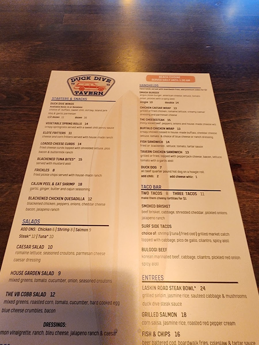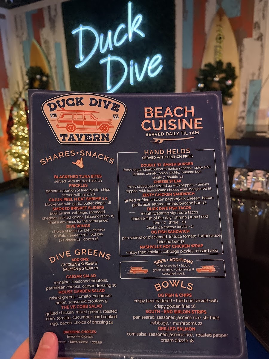 Overall, Duck Dive Tavern's menu is a delicious mix of comfort food, bold flavors, and fresh options, making it an excellent choice for any dining occasion.